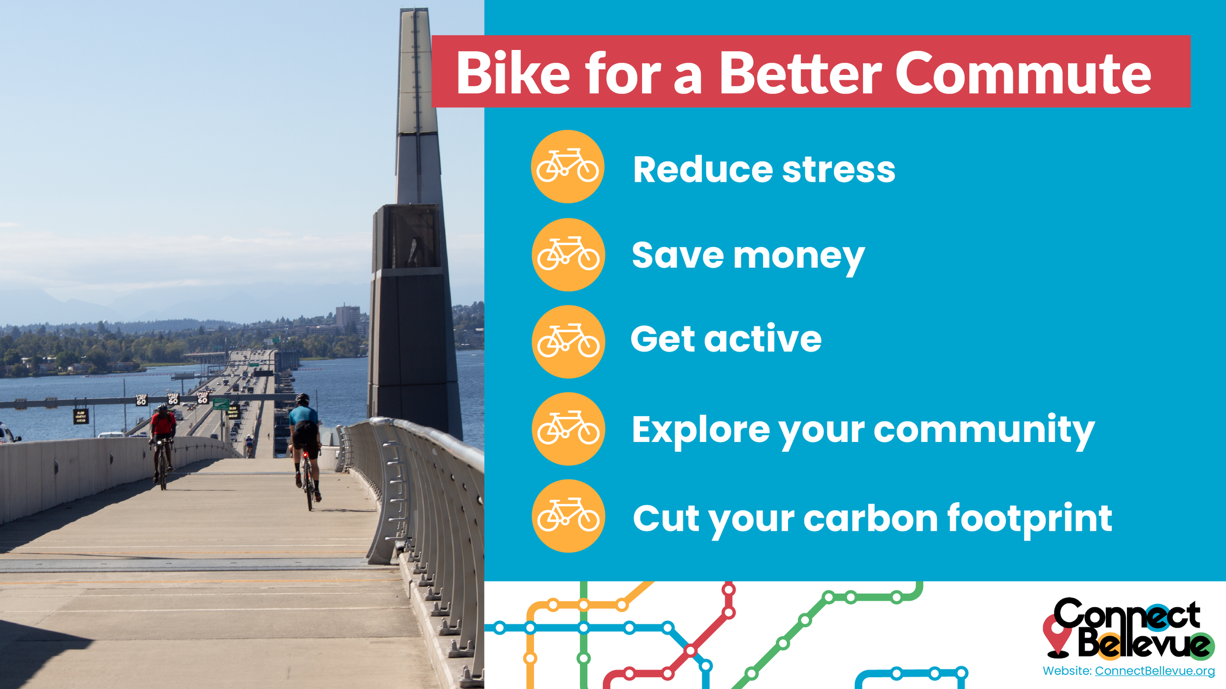 Print and display at worksites or hand out to your employees to promote biking benefits, tips, and resources.