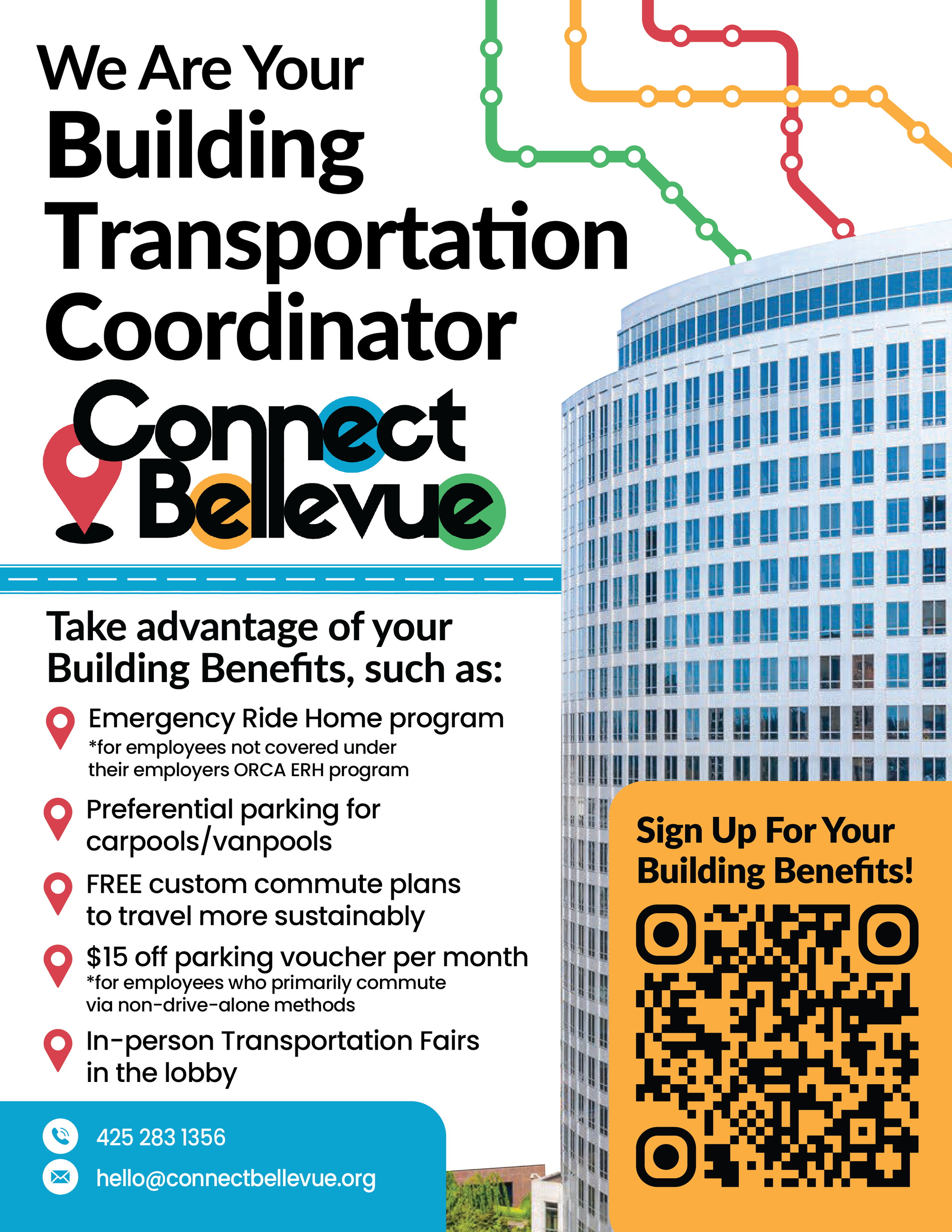 Print and post this flyer in common areas, or attach it to tenant emails and newsletters to let employees know about their building’s transportation benefits.