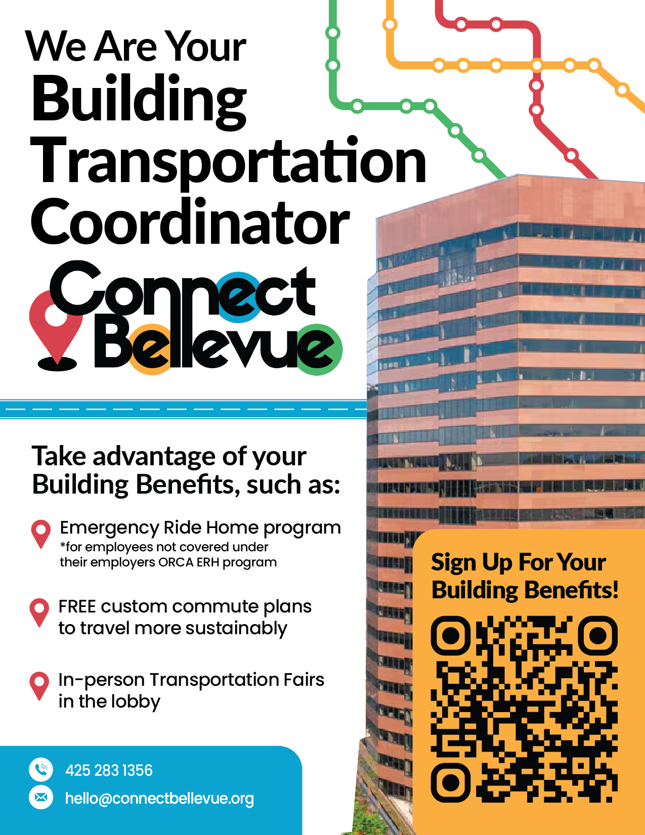 Print and post this flyer in common areas, or attach it to tenant emails and newsletters to let employees know about their building’s transportation benefits.